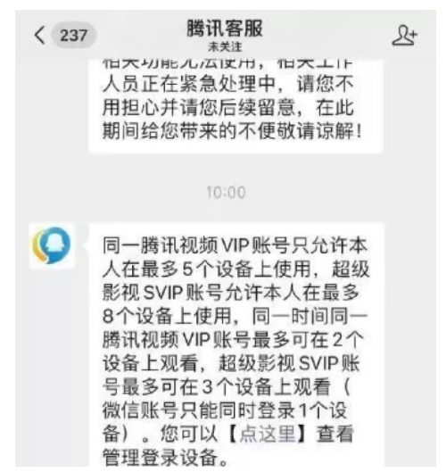 驱动中国2023年2月13日消息,近日,有多名网友反映多设备同时登陆腾讯视频账号被封,对此腾讯视频客服回应称,同一腾讯视频VIP账号只允许本人在最多5个设备上使用,同一时间同一腾讯视频VIP账号最多可在2个设备上观看。