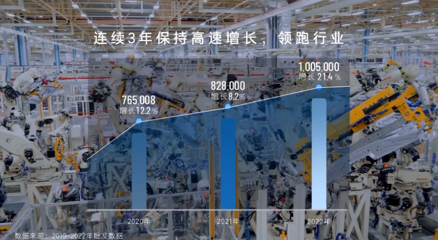 1 月 3 日消息报道,广汽集团数据显示,广汽丰田 2022 全年累计生产 1009265 台,同比增长 22.6%;累计销售 1005000 台,同比增长 21.4%。