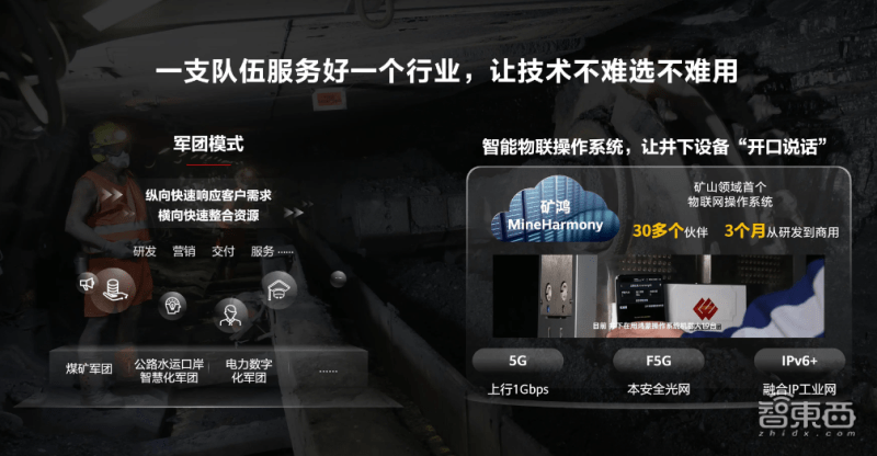 虽然时间不长,但军团已取得了一些进展。比如在煤矿行业,矿鸿(MineHarmony)作为矿山领域首个物联网操作系统,联合30多个伙伴3个月实现从研发到商用,目前已落地多地多家矿山。“原来说方言的设备开始说普通话”,从而实现了井下设备的互联互通。