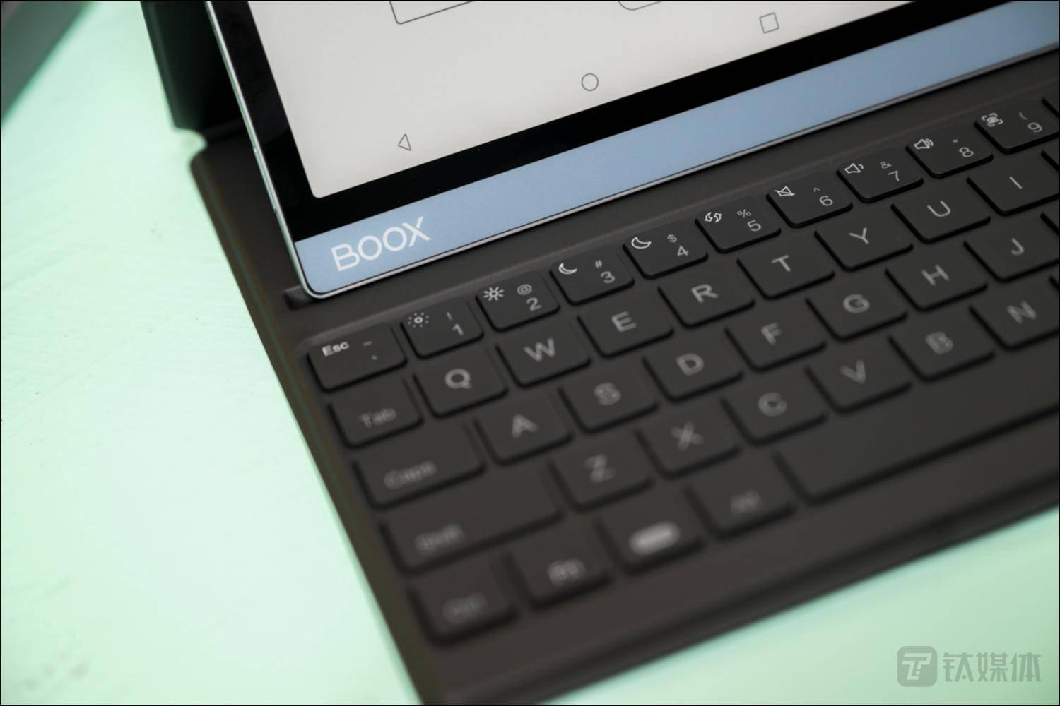 除了在结构上下功夫,文石BOOX Tab10的键盘在键位布局上也非常合理,以往的平板产品键盘外设基本都是为较大尺寸的产品设计的,所以键盘的按键布置空间余量会更足。而文石BOOX Tab10尽管键盘主体很紧凑,但在快速输入的过程中,由于键帽设计与缝隙留有足够距离,并不会出现误触的问题,这点值得好评。