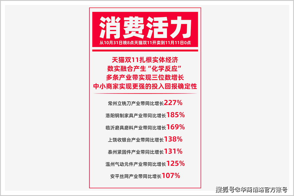 从10月31日晚8点天猫双11第一波售卖启动到11月11日0点,全国多条产业带的整体成交额同比实现三位数暴涨。