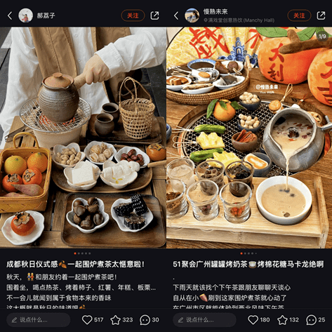 搭载行业的东风,“围炉煮茶”出来就是网红命。更何况,它恰好迎上当下新起的市场需求。