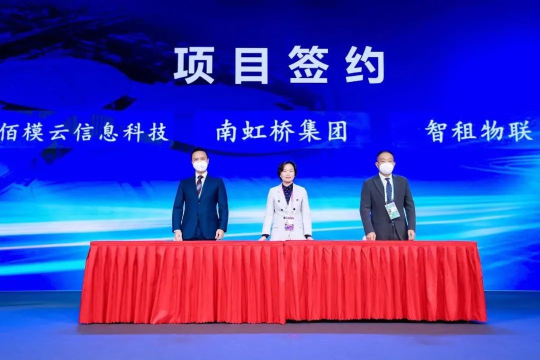 活动现场,在闵行区区委、区政府见证下,智租换电董事长李学军与南虹桥集团党委副书记、总经理李丽签约战略合作协议。
