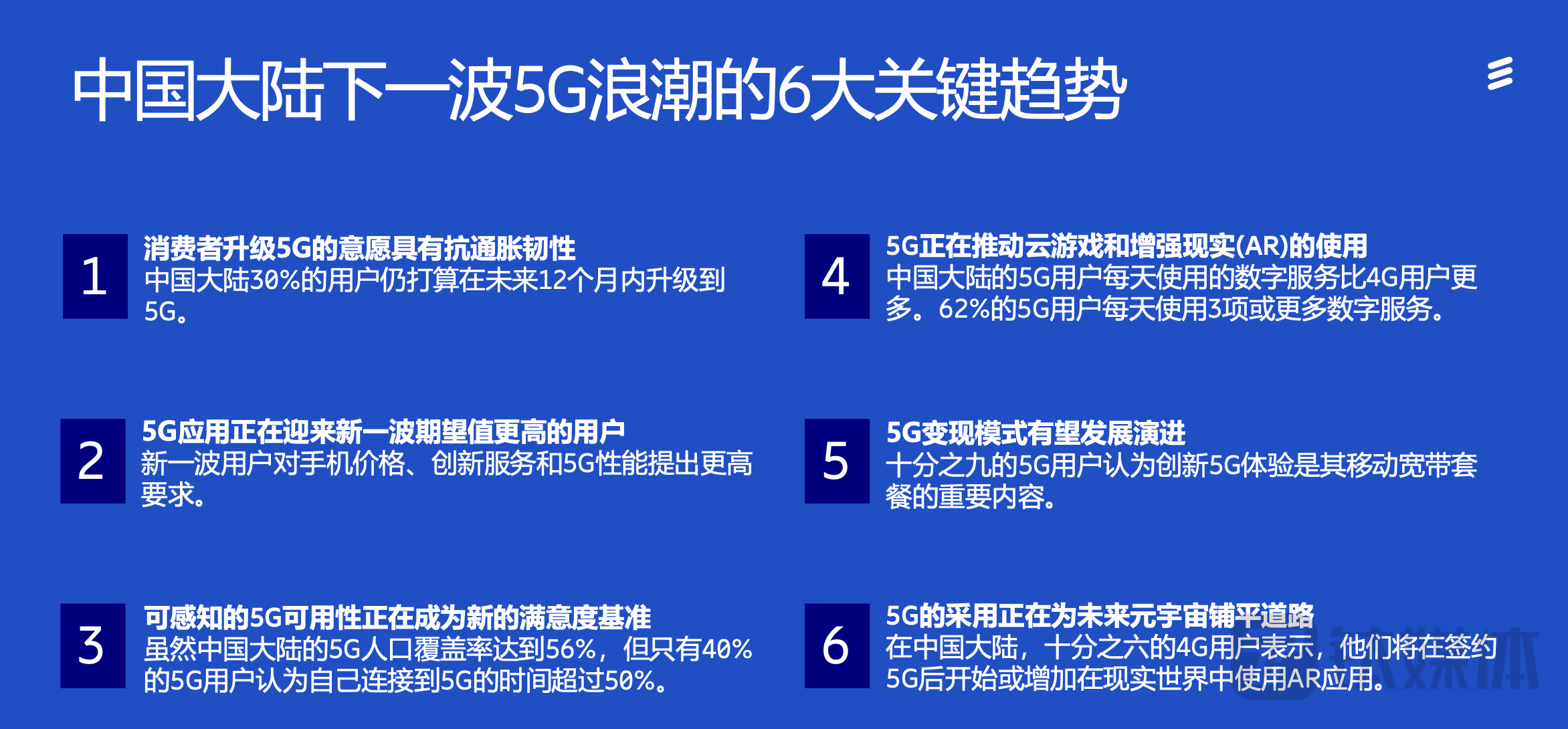 爱立信称,这一研究反映了国内2.55亿5G用户的观点。