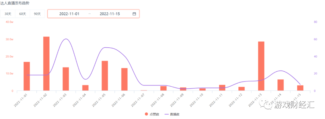 此外,根据DataEye数据,《全明星激斗》11月上线以来持续加码效果型达人直播。