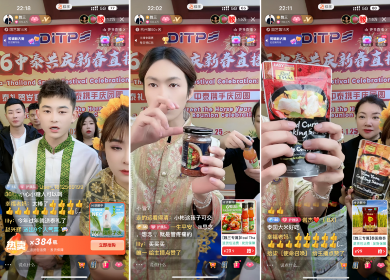本次直播盛典早已超越单纯的商业范畴,成为一座鲜活的中泰文化互鉴桥梁。此次沉浸式的直播场景,让泰国传统文化习俗、手工艺品背后的匠心故事得以直观呈现,各平台主播们激情澎湃的为助力中泰直播经济发展奉献精神,直播间与粉丝互动跳起泰国舞,高声大喊“中泰一家亲”,气氛非常热闹。让消费者在选购年货的同时,感受泰国文化的温度与魅力,更实现了“云享泰式年味,共赴文化之约”。这种跨越国界的文化共鸣,彰显了中泰两国深厚的民间情谊,也为双边合作开启了新未来。