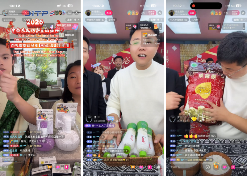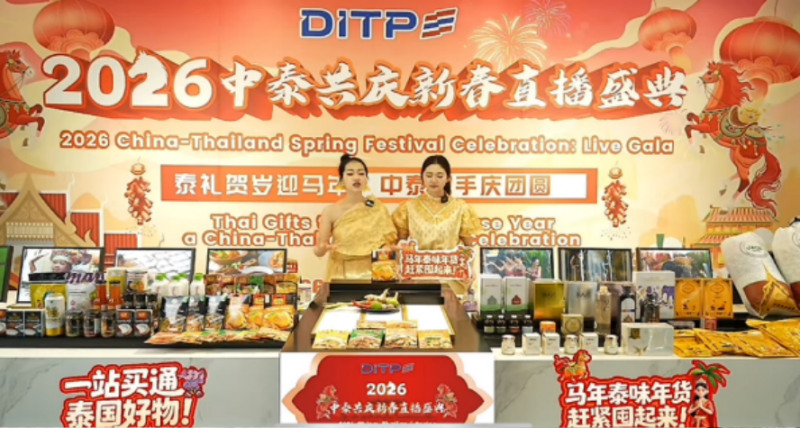 2026年1月25日,由泰国商务部国际贸易促进厅(DITP)与泰王国驻上海总领事馆商务处联合主办的“2026泰品贺岁·中泰共庆新春直播盛典”圆满落幕。这场从2026年1月15日-1月25日,为期十天的跨国盛宴,以“泰礼贺岁迎马年,中泰携手庆团圆”为核心主题,不仅交出了亮眼的经贸答卷,更以数字为桥、以文化为媒,成为深化中泰两国人民情谊、推动双向文化交流的典范之作。