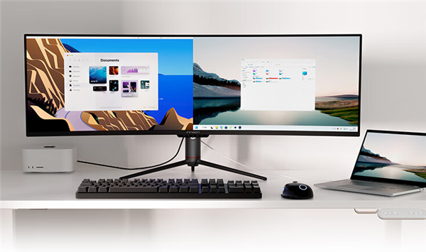 据介绍,新款显示器采用了一块49寸VA面板,分辨率为5120*1440,刷新率为120Hz,具有1800R大曲率。