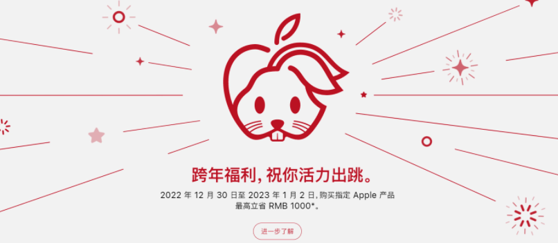 12 月 27 日,苹果中国官网开启新一轮“立减活动”,2022 年 12 月 30 日-2023 年 1 月 2 日,用指定支付方式购买符合条件的产品可享立减优惠,多款产品参与优惠,降价幅度从 100 元到 1000 元不等。