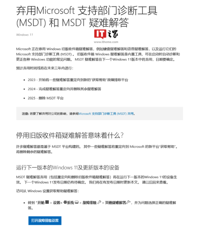Microsoft 正在停用 Windows 旧版收件箱疑难解答,例如键盘疑难解答和语音疑难解答,以及运行它们的 Microsoft 支持部门诊断工具 (MSDT) 。旧版自带 Windows 疑难解答是内置工具,可在启动时自动诊断和更正各种 Windows 功能的常见问题。MSDT 疑难解答在下一个 Windows 11 版本中将弃用,日期要确定。